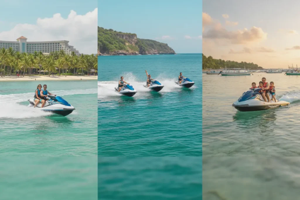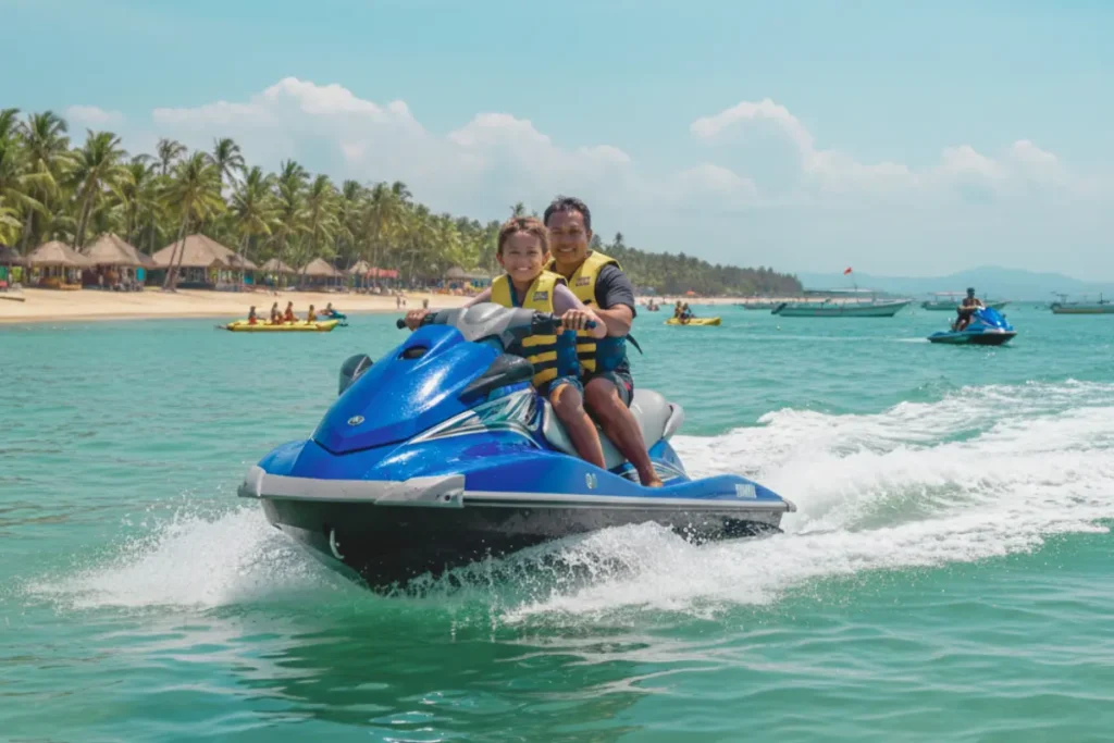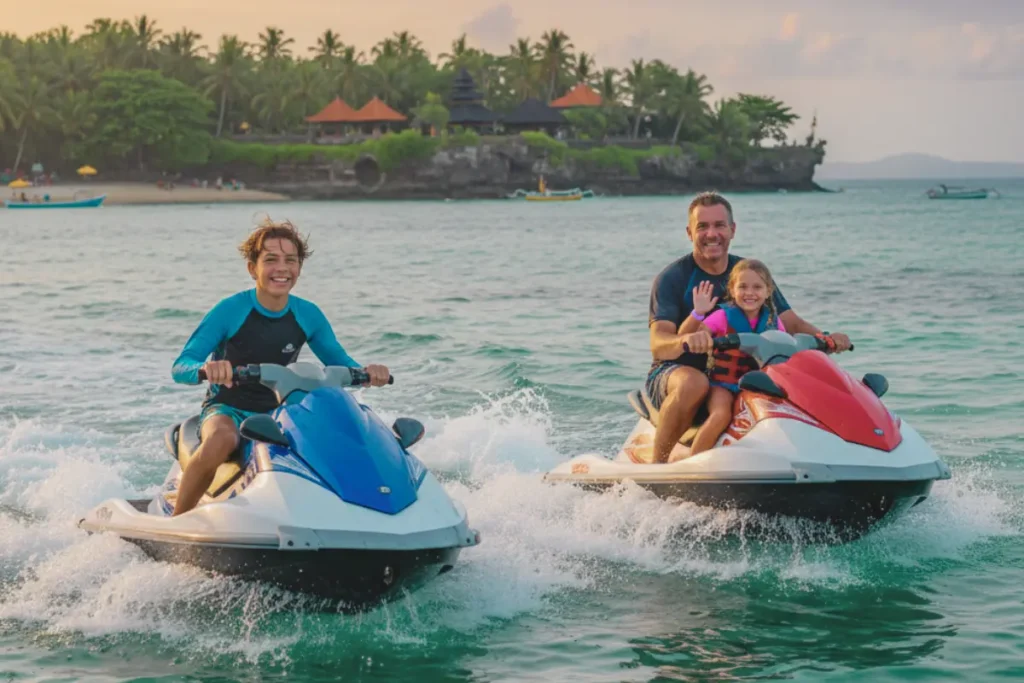 Jet ski activities in Bali are usually conducted in sheltered coastal zones such as Benoa and parts of Sanur rather than in open surf areas.